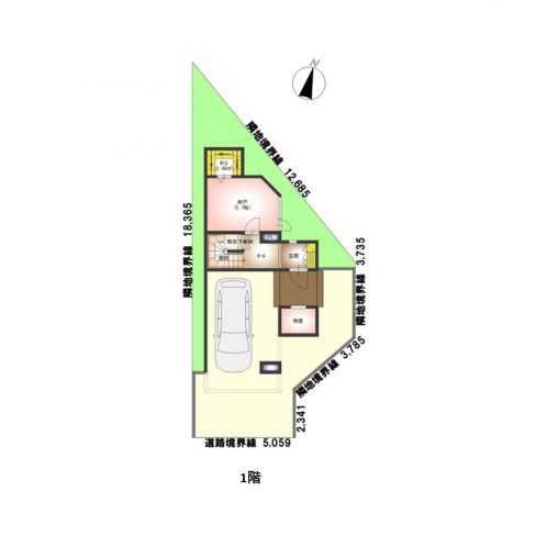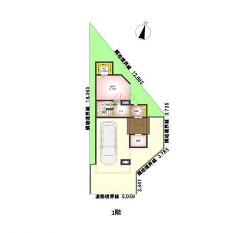 - 南側20.0m公道に間口5.059m接道
