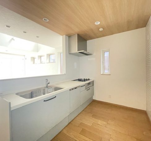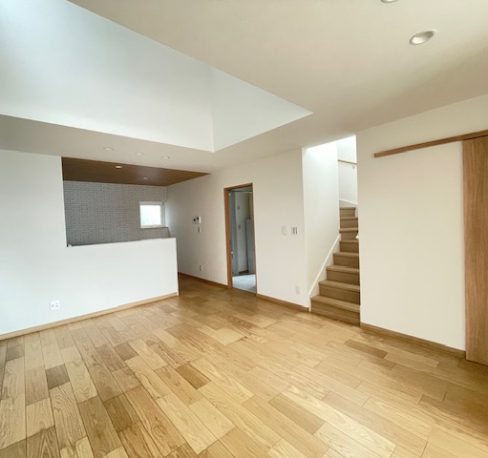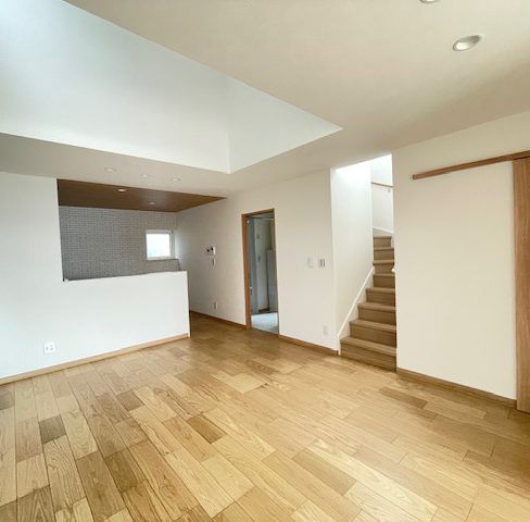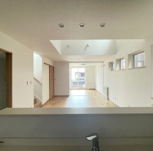 吹抜けから日差しが差し込む明るく開放的なリビングダイニング。家族みんながゆったり寛げる空間。2階各部屋は2面採光で通風良好で快適空間。洋室にはたっぷり収納出来るクローゼットと主寝室にはウォークインクローゼットを完備。玄関には土間暖房とシューズクローゼットを完備。ZEH×都市ガスで、省エネに優れた住まいで光熱費を抑えられます。外壁はガルバリウム鋼板を採用。耐久性に優れメンテナンスコストも抑えられます。駐車2台可能。